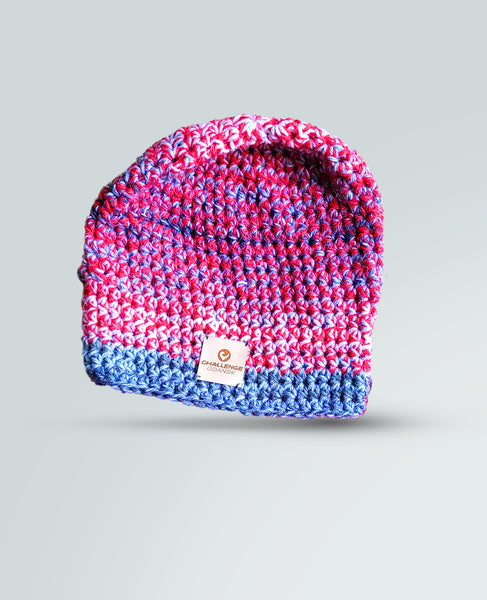 Zimowa czapka z włóczki z domieszką wełny Merino wykonana ręcznie. Z uwagi na ręczne wykonanie nie ma dwóch identycznych czapek, każda jest inna. Kilka zestawów kolorystycznych jak na załączonych zdjęciach. Czapka posiada logo Challenge Gdańsk na naszywce znajdującej się z przodu czapki.