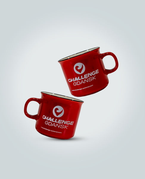 Ceramiczny kubek w stylu Vintage o pojemności 300 ml. Biały środek i czarna obramówka. Logo Challenge Gdańsk znajduje się po obu stronach kubka. Idealny do porannej kawy, ale gwarantujemy, że herbata smakuje z niego równie dobrze!