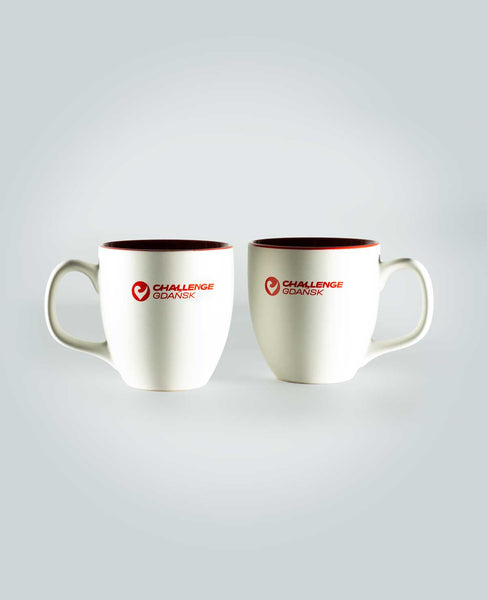 Ceramiczny kubek o pojemności 420 ml. Kubek koloru białego z czerwonym nadrukiem logo Challenge Gdańsk, które znajduje się po obu stronach kubka. Idealny do zimowej herbaty, ale jak ktoś lubi bardzo dużą kawę to również będzie zadowolony.
